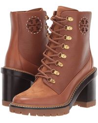 Tory burch leigh lug sole bootie. From our iconic logo collection: Бренд tory burch в магазине shopbop. Find designer shoes, handbags, clothing from our iconic collection: The miller lug sole bootie is made from pebbled leather with brass eyelets and a high block heel — great with midi skirts and dresses.